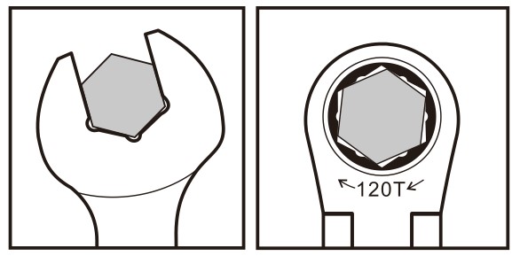 • Box end with a 6PT anti-slip design provides a firm grip on the nut from all angles, ensuring greater stability, with 80% damage can still be used and won't harm the nut.