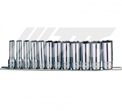 • Contents: 12pcs-3/8” socket:8,9,10,11,12,13,14,15,16,17,18,19 • Socket length: 76mm • 6 point type.